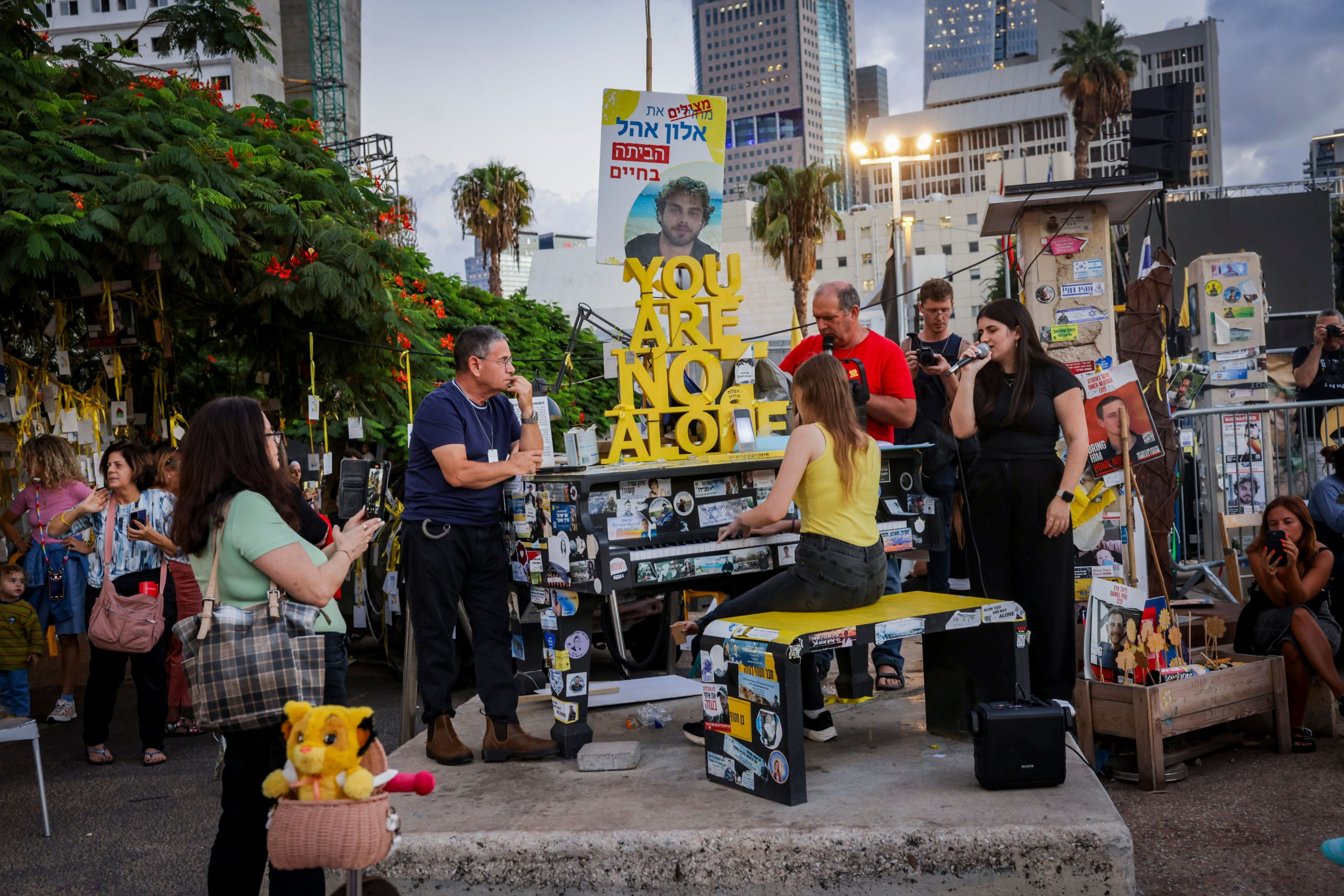 ‘Optimistic skepticism’: Hostage square attendees on hostage release